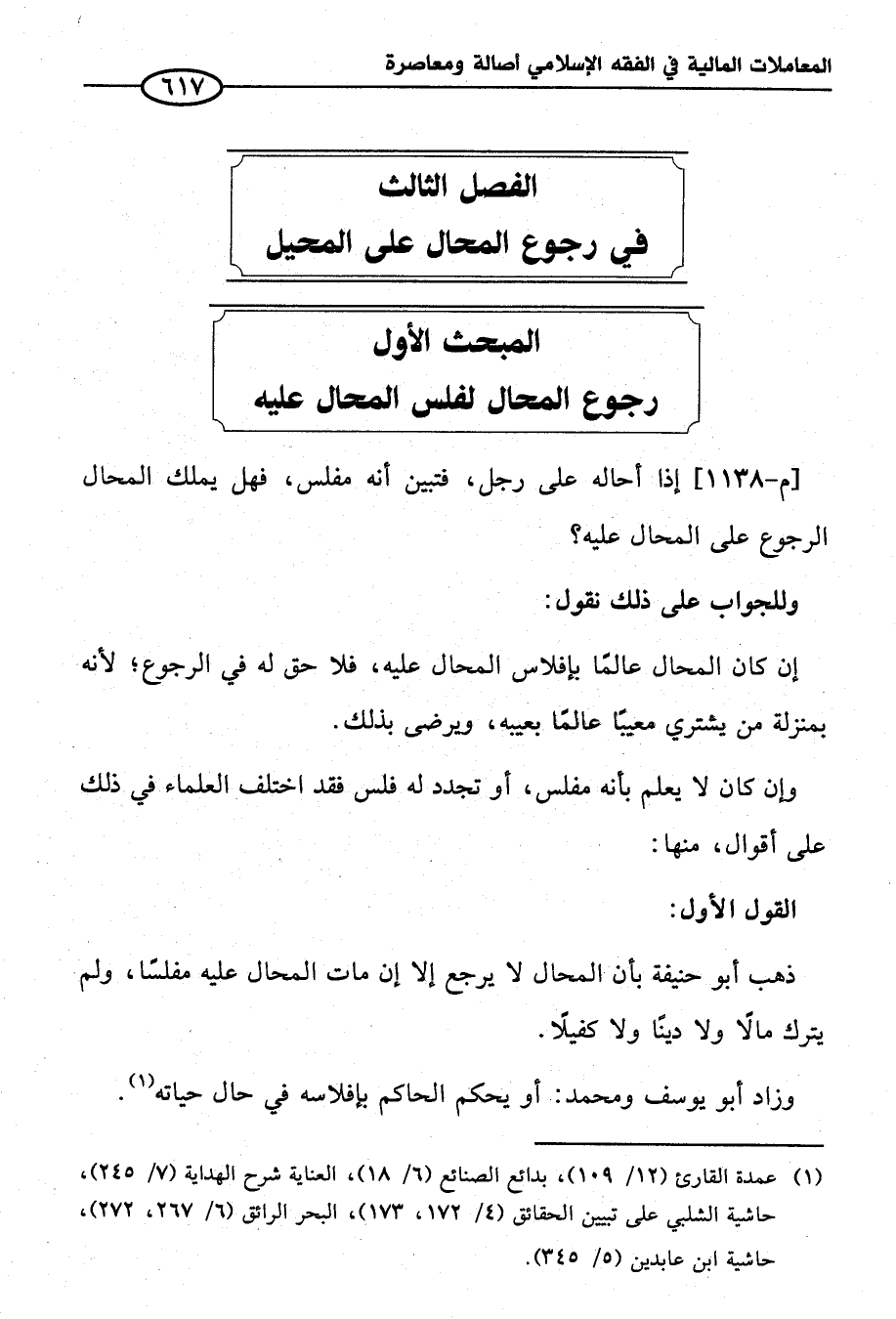 المبحث الأول رجوع المحال لفلس المحال عليه