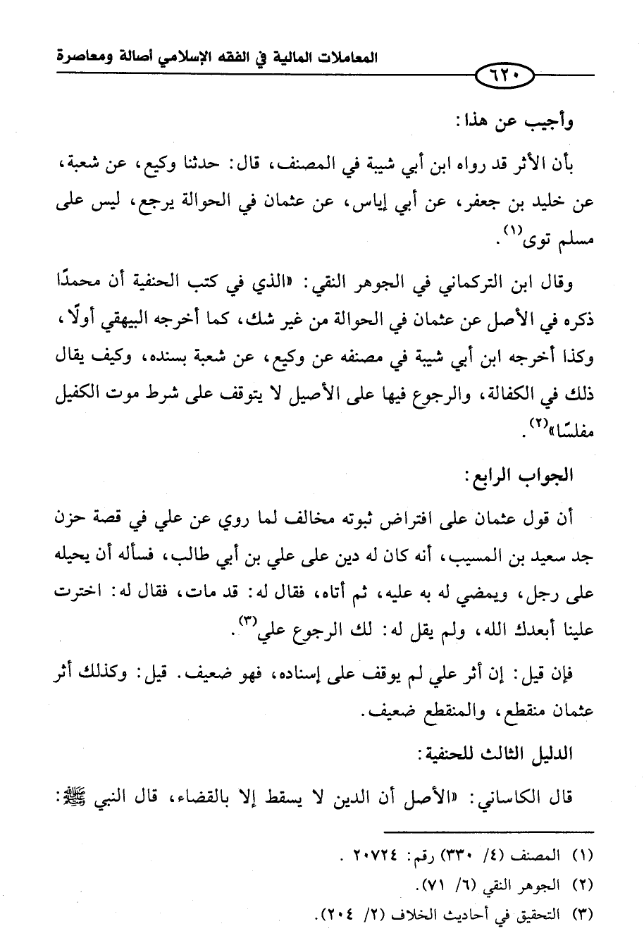 وقال ابن التركماني في الجوهر النقي: "الذي في كتب الحنفية أن محمدًا ذكره في الأصل عن عثمان في الحوالة من غير شك، كما أخرجه البيهقي أولًا، وكذا أخرجه ابن أبي شيبة في مصنفه عن وكيع، عن شعبة بسنده، وكيف يقال ذلك في الكفالة، والرجوع فيها على الأصيل لا يتوقف على شرط موت الكفيل مفلسًا" (¬٢).