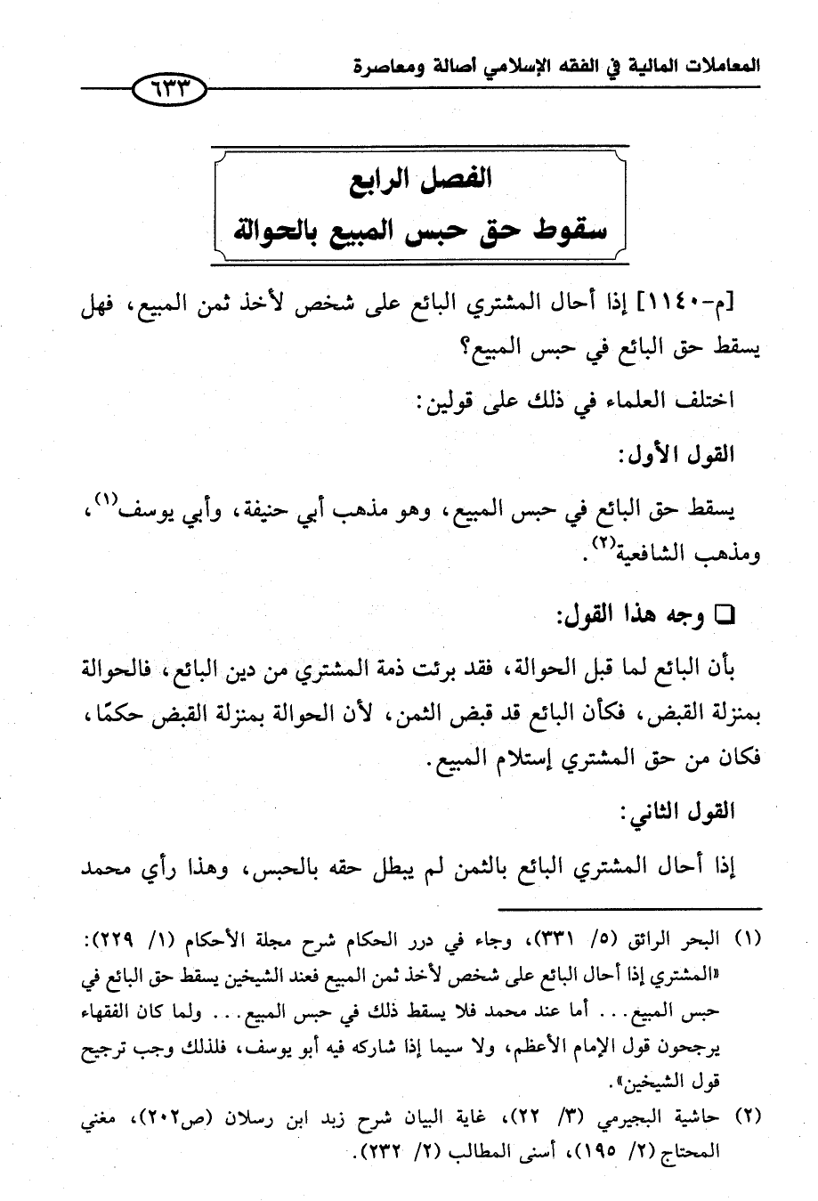 الفصل الرابع سقوط حق حبس المبيع بالحوالة