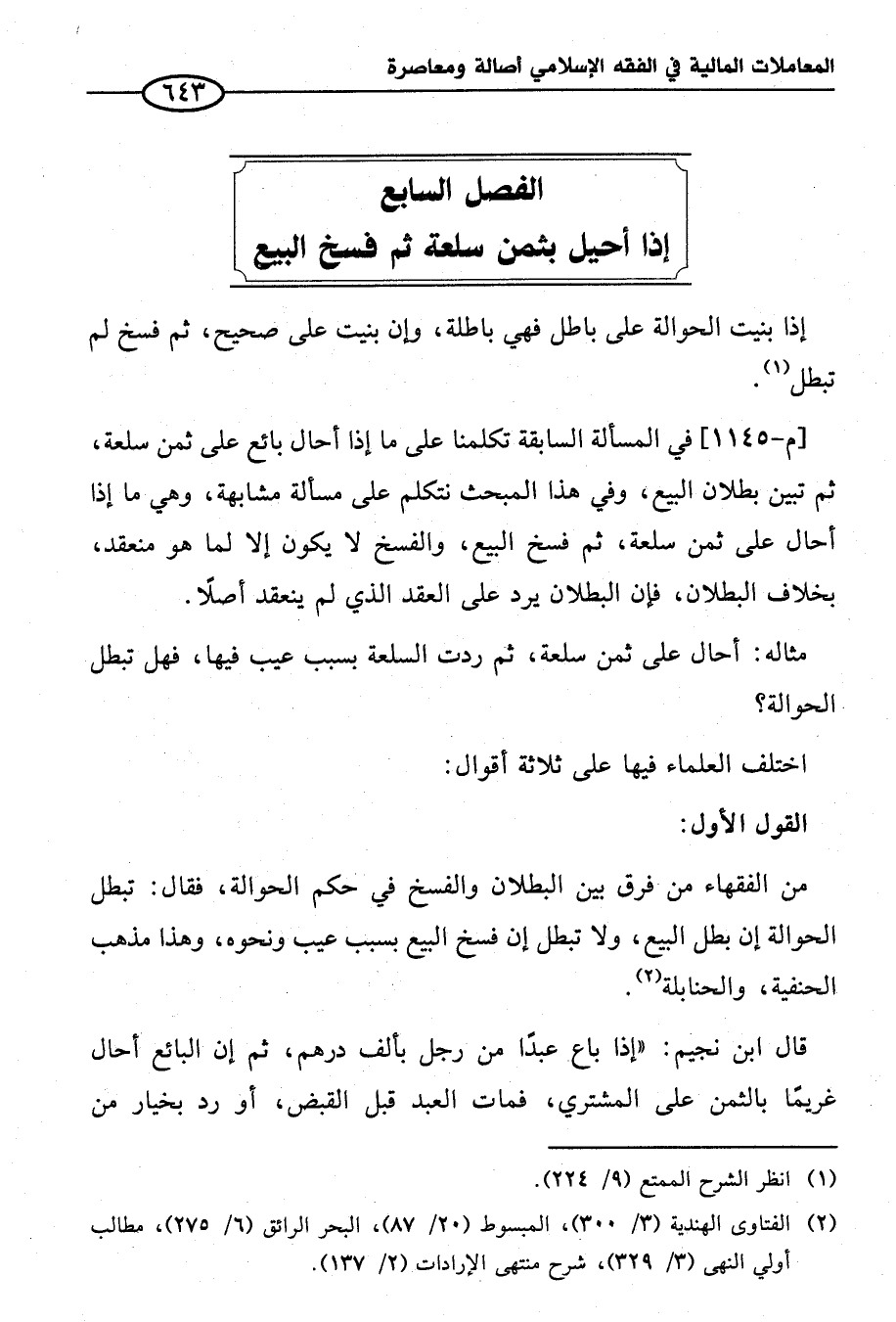 الفصل السابع إذا أحيل بثمن سلعة ثم فسخ البيع