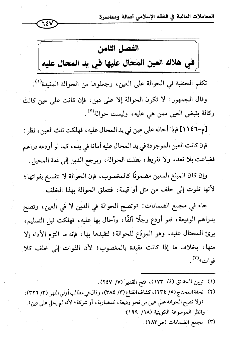 الفصل الثامن في هلاك العين المحال عليها في يد المحال عليه