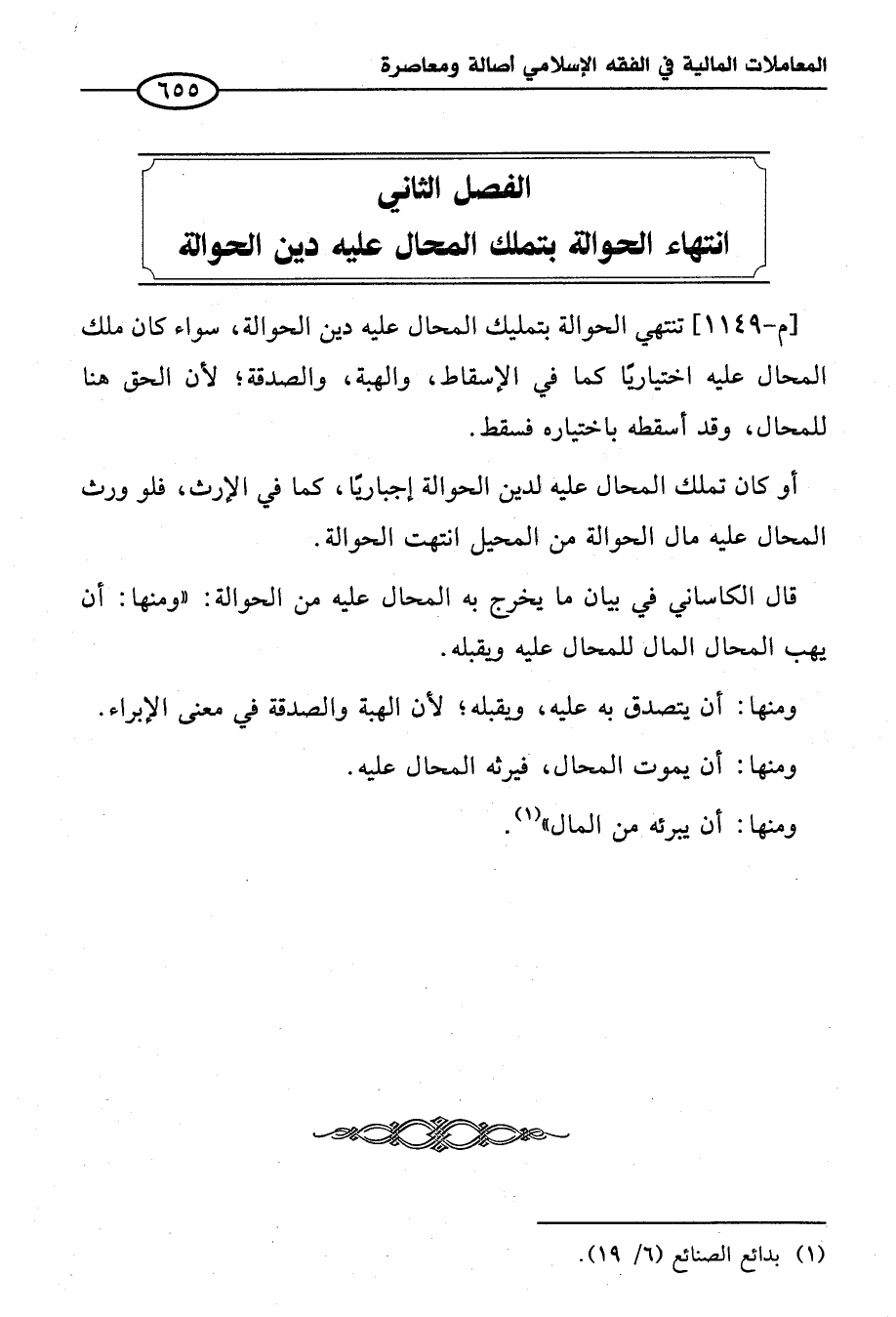 الفصل الثاني انتهاء الحوالة بتملك المحال عليه دين الحوالة