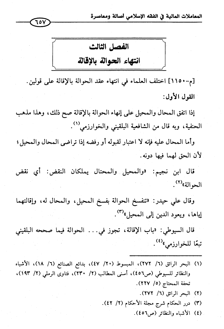 الفصل الثالث انتهاء الحوالة بالإقالة