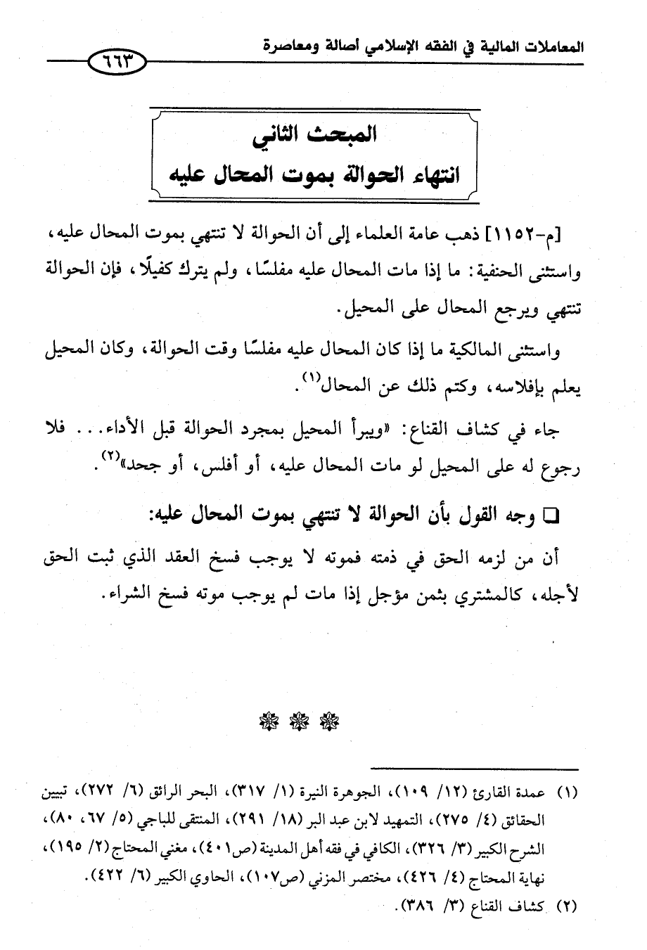 المبحث الثاني انتهاء الحوالة بموت المحال عليه