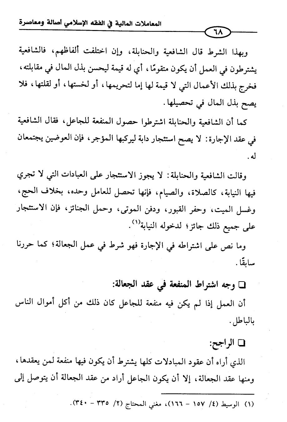 كما أن الشافعية والحنابلة اشترطوا حصول المنفعة للجاعل، فقال الشافعية في عقد الإجارة: لا يصح استئجار دابة ليركبها المؤجر، فإن العوضين يجتمعان له.