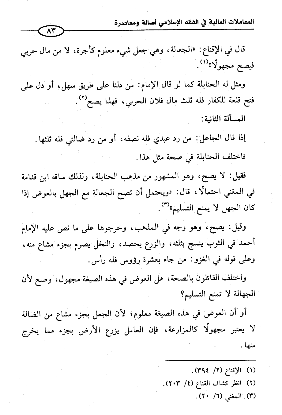أو أن العوض في هذه الصيغة معلوم؛ لأن الجعل بجزء مشاع من الضالة لا يعتبر مجهولًا كالمزارعة، فإن العامل يزرع الأرض بجزء مما يخرج منها.