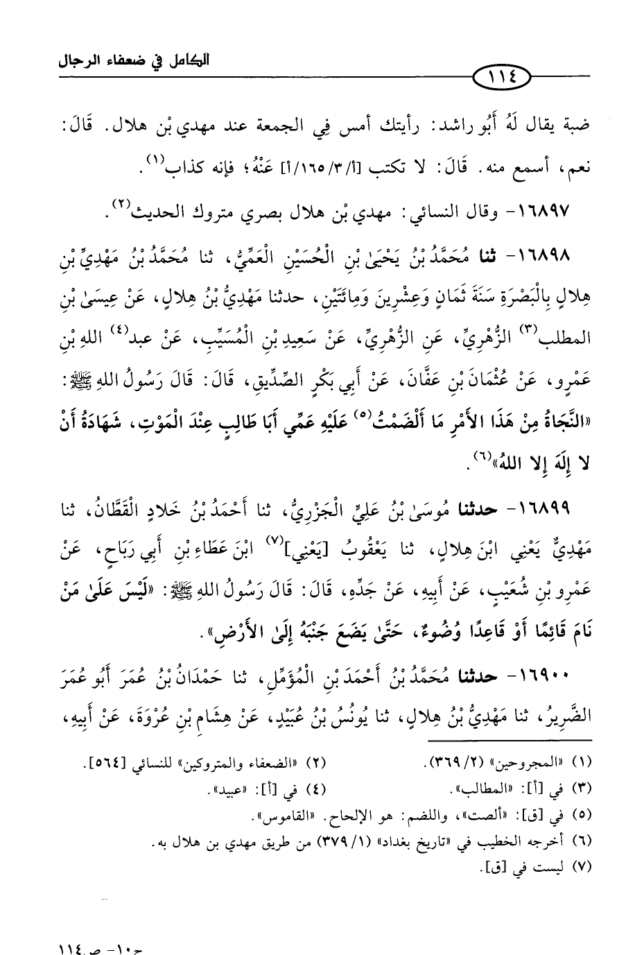 16897 - وقال النسائي: مهدي بن هلال بصري متروك الحديث.