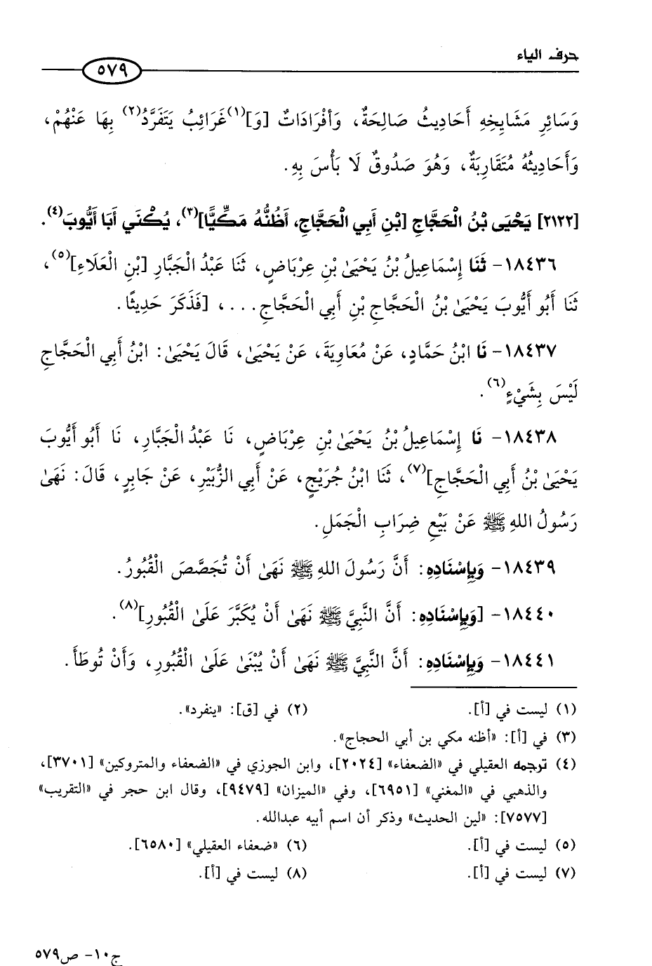 18437 - حَدثنا ابن حماد، عن معاوية، عن يحيى، قال: يحيى بن أبي الحجاج ليس بشيء.