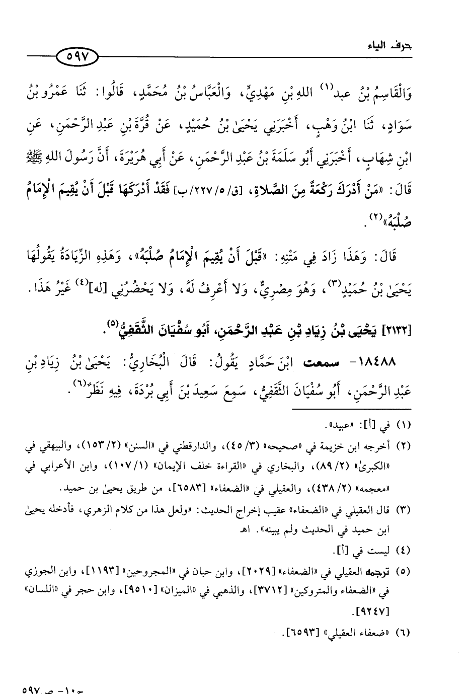 18488 - سمعتُ ابن حماد، يقول: قال البُخاري: يحيى بن زياد بن عَبد الرحمن أَبو سفيان الثقفى، سمع سعيد بن أبي بردة فيه نظر.