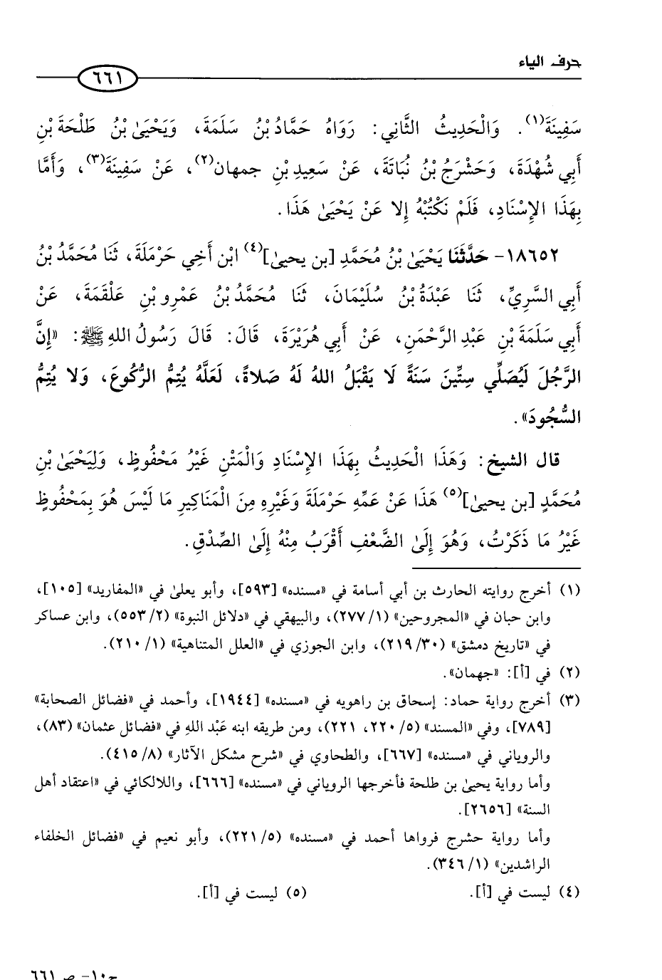18652 - حَدثنا يحيى بن مُحمد بن يحيى ابن أخي حرملة، حَدثنا مُحمد بن أبي السري، حَدثنا عبده بن سليمان، حَدثنا مُحمد بن عَمرو بن علقمة، عن أبي سلمة بن عَبد الرحمن، عن أبي هريرة، قال: قال رسول الله صَلى الله عَليه وسَلم: إِنّ الرجل ليصلي ستين سنة، لا يقبل الله له صلاة، لعله يتم الركوع، ولا يتم السجود.