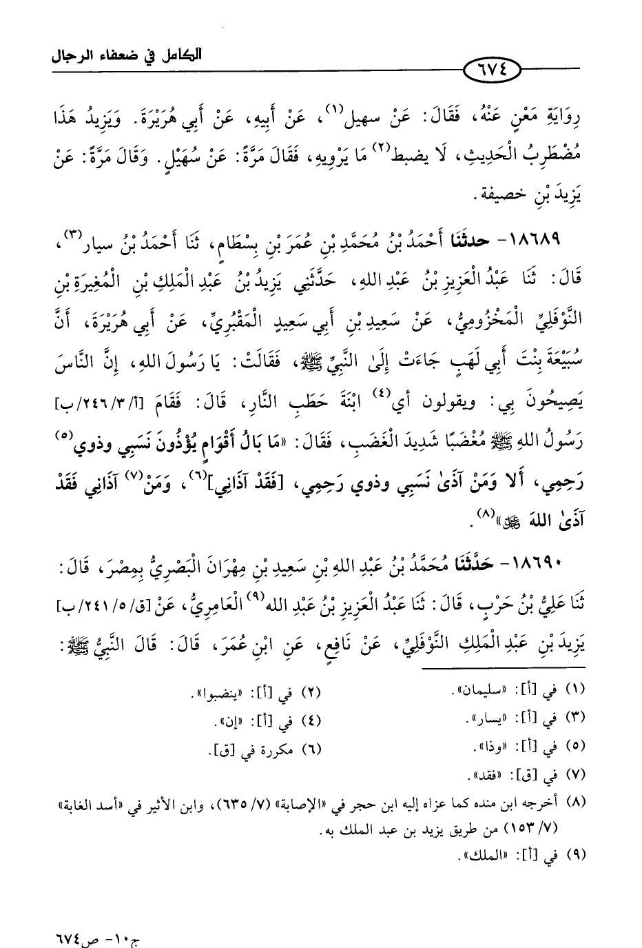 كتاب الكامل في ضعفاء الرجال لابن عدي - الرشد (اسم الجزء: 10)