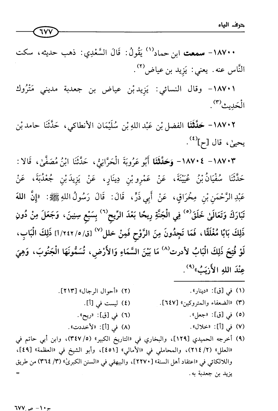 18700 - سمعتُ ابن حماد، يقول: قال السعدي: ذهب حديثه، سكت الناس عنه، يعني يزيد بن عياض.