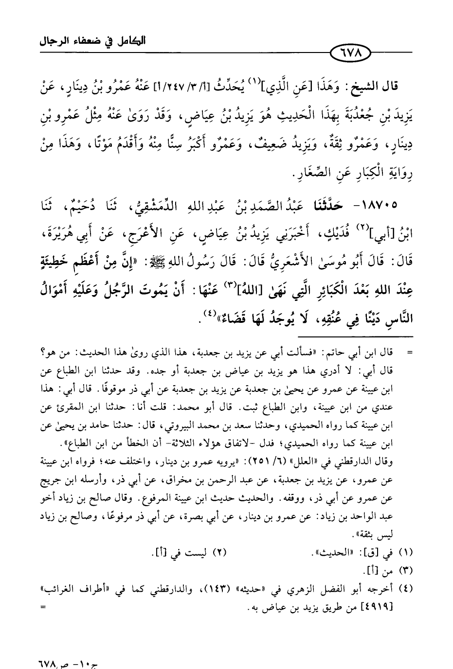 كتاب الكامل في ضعفاء الرجال لابن عدي - الرشد (اسم الجزء: 10)