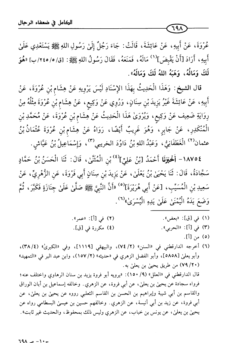 كتاب الكامل في ضعفاء الرجال لابن عدي - الرشد (اسم الجزء: 10)