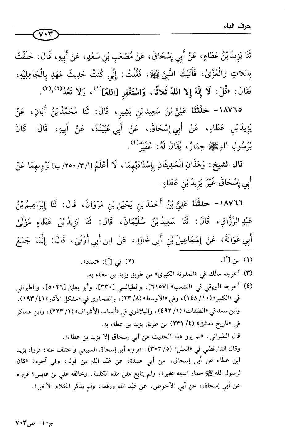 قال الشيخ: وهذان الحديثان بإسناديهما، لا أعلم يرويهما عن أبي إسحاق غير يزيد بن عطاء.