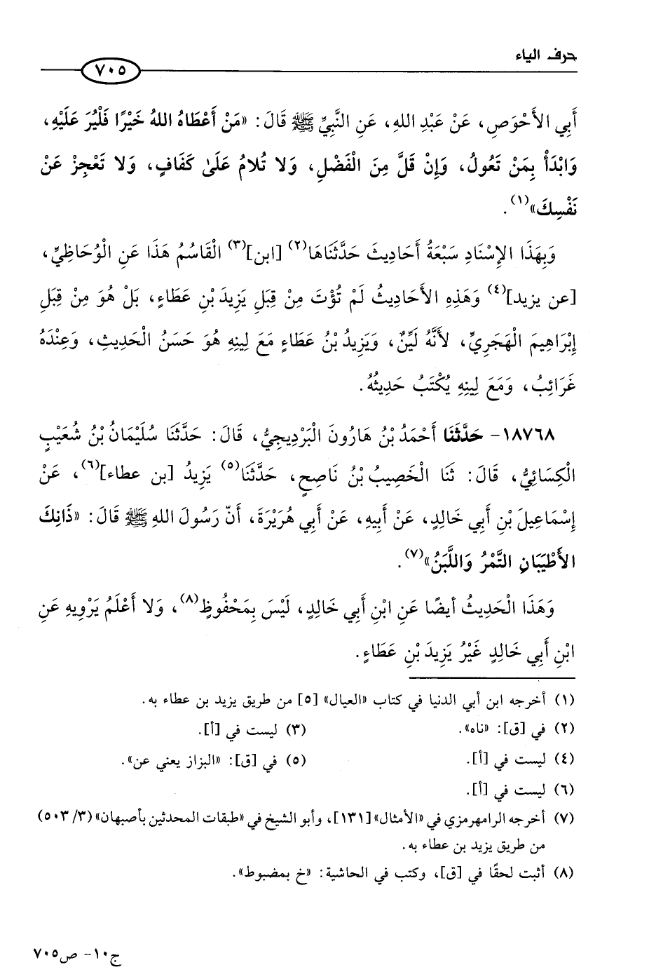 18768 - حَدثنا أحمد بن هارون البرديجى، قال: حَدثنا سليمان بن شُعَيب الكسائي، قال: حَدثنا الخصيب بن ناصح، حَدثنا يزيد بن عطاء، عن إسماعيل بن أبي خالد، عن أبيه، عن أبي هريرة؛ أن رسول الله صَلى الله عَليه وسَلم قال: ذانك الأطيبان: التمر واللبن.