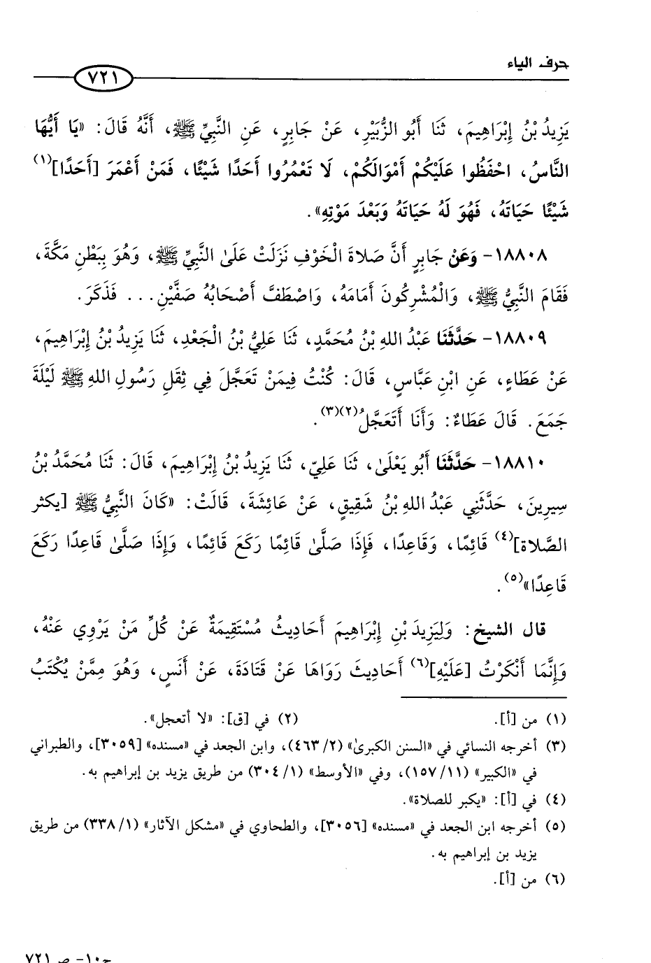 18809 - حَدثنا عَبد الله بن مُحمد، حَدثنا علي بن الجعد، حَدثنا يزيد بن إبراهيم، عن عطاء، عن ابن عباس، قال: كنتُ فيمن تعجل في ثقل رسول الله صَلى الله عَليه وسَلم ليلة جمع. قال عطاء: وأنا أتعجل.