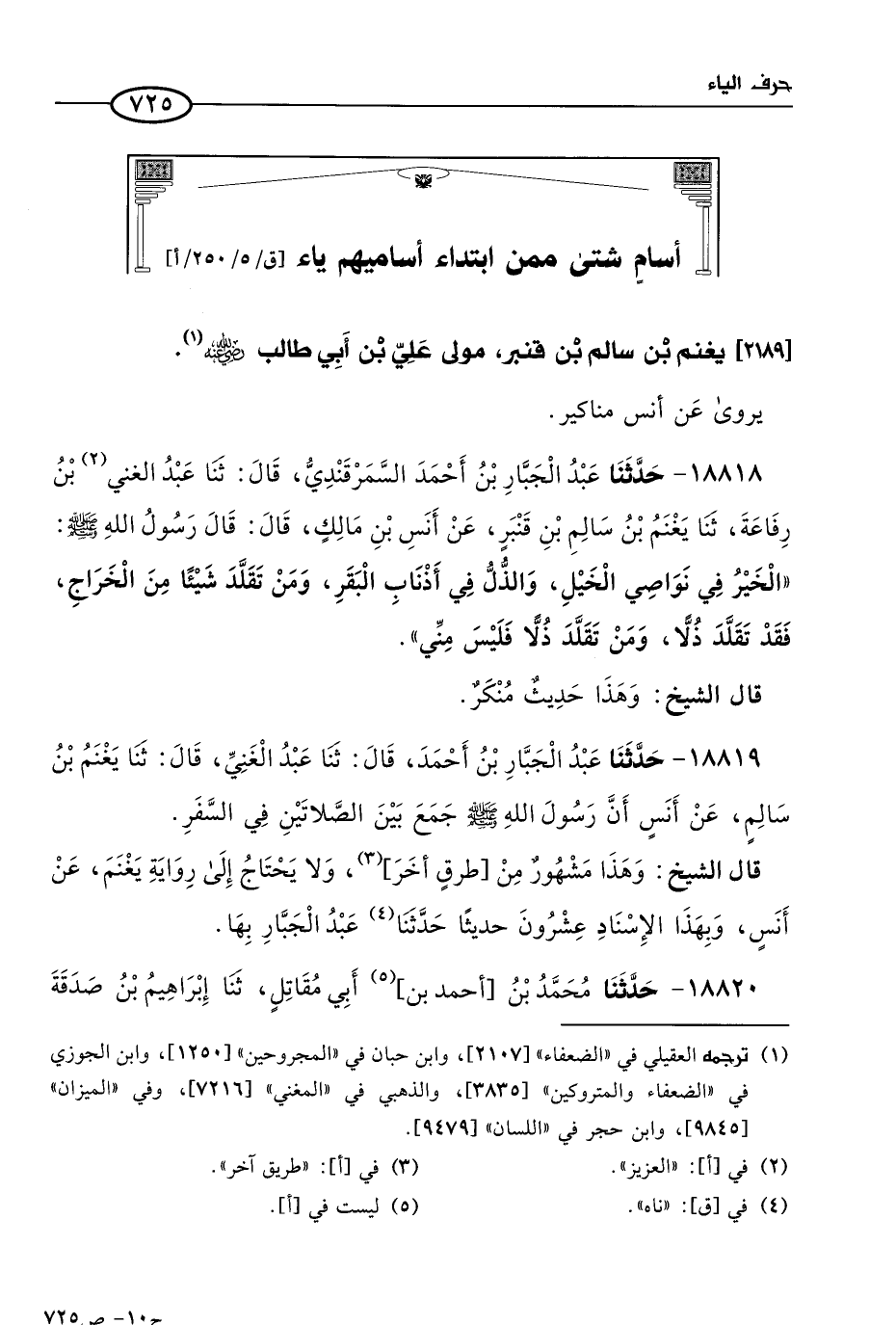 قال الشيخ: وهذا مشهور من طرق أُخر، ولا يحتاج إلى رواية يغنم عن أَنَس، وبهذا الإسناد عشرون حديثًا، حَدثنا عَبد الجبار بها.