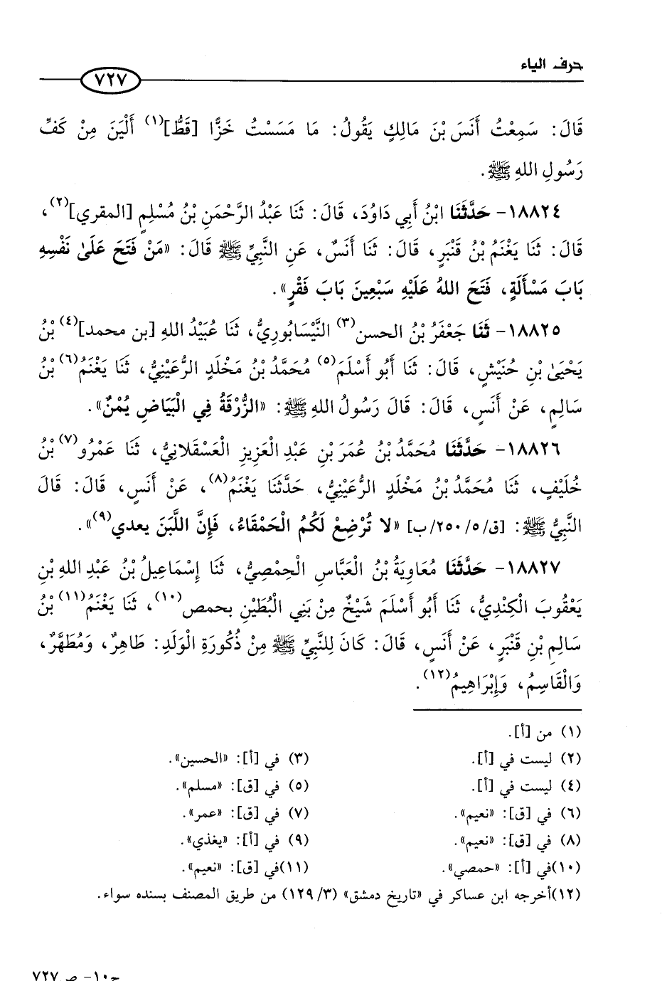 18827 - حَدثنا معاوية بن العباس الحِمصي، حَدثنا إسماعيل بن عَبد الله بن يعقوب الكندي، حَدثنا أَبو أسلم، شيخ من بنى البطين بحمص، حَدثنا يغنم بن سالم بن قنبر، عن أَنَس، قال: كان للنبي صَلى الله عَليه وسلم من ذكورة الولد: طاهر، ومطهر، والقاسم، وإبراهيم.