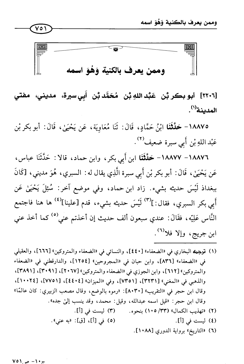 [2206] أَبو بكر بن عَبد الله بن مُحمد بن أبي سبرة مدينى، مفتي المدينة.