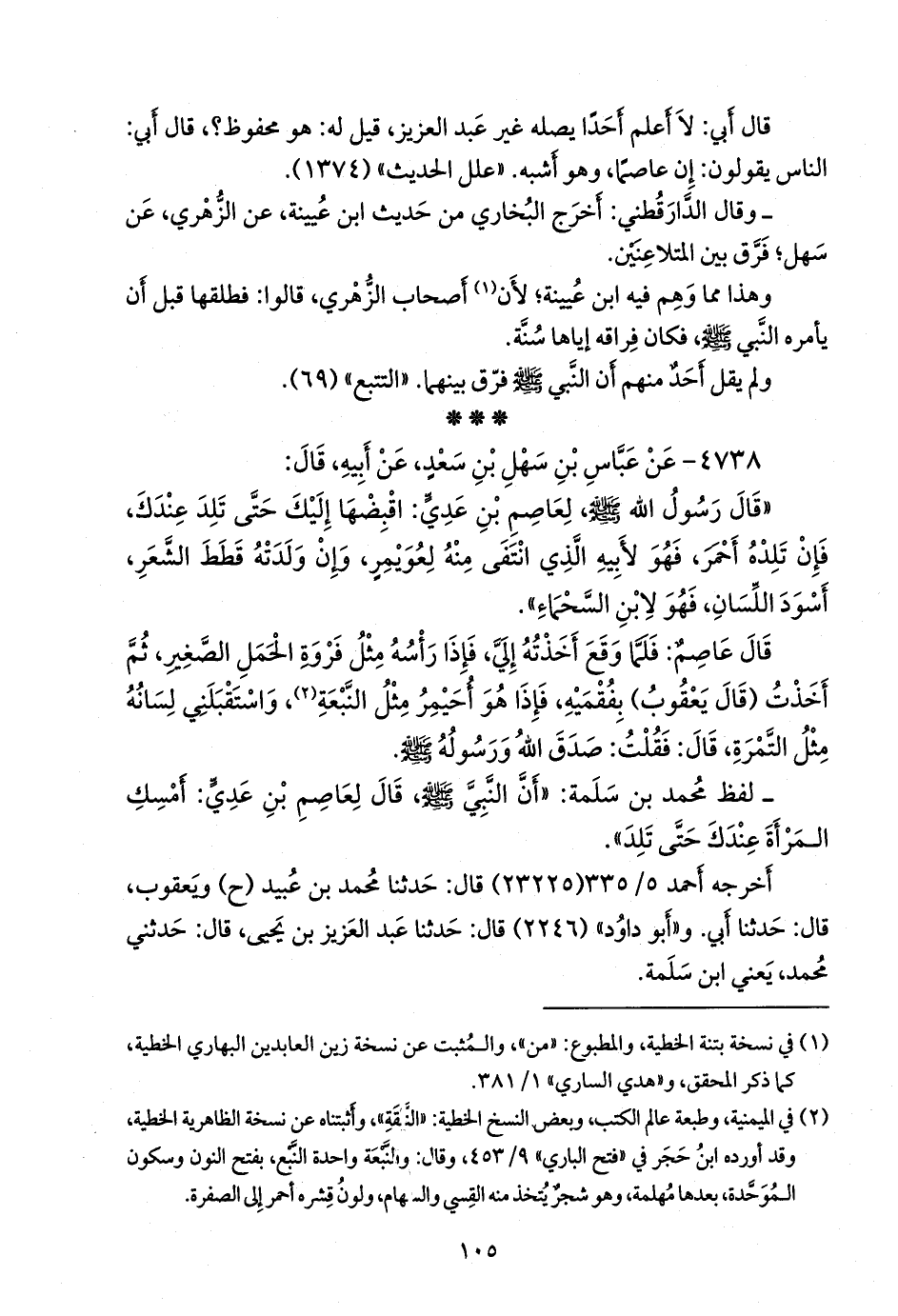 أخرجه أحمد (٢٣٢٢٥) قال: حدثنا محمد بن عبيد (ح) ويعقوب، قال: حدثنا أبي. و «أَبو داود» (٢٢٤٦) قال: حدثنا عبد العزيز بن يحيى، قال: حدثني محمد، يعني ابن سلمة.