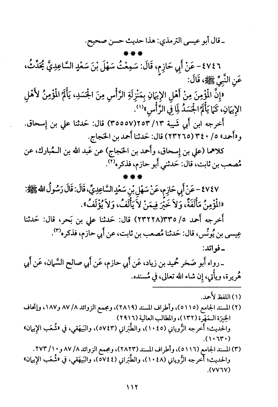 (¬٢) المسند الجامع (٥١١٥)، وأطراف المسند (٢٨١٩)، ومَجمَع الزوائد ٨/ ٨٧ و ١٨٧، وإتحاف الخِيرَة المَهَرة (١٣٢)، والمطالب العالية (٢٩١٦)