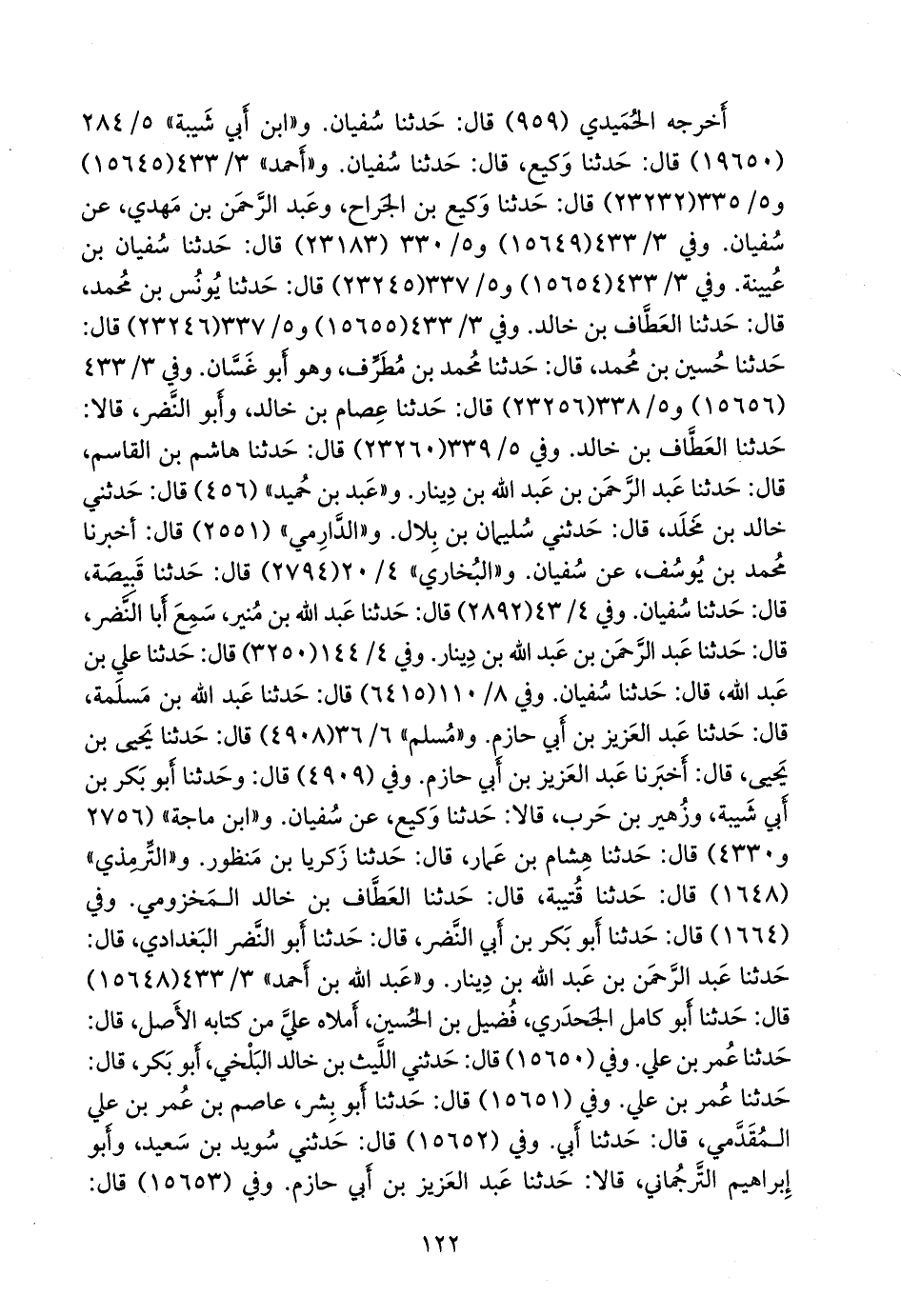 وفي ٣/ ٤٣٣ (١٥٦٥٥) و ٥/ ٣٣٧ (٢٣٢٤٦) قال: حدثنا حسين بن محمد، قال: حدثنا محمد بن مطرف، وهو أَبو غسان. وفي ٣/ ٤٣٣ (١٥٦٥٦) و ٥/ ٣٣٨ (٢٣٢٥٦) قال: حدثنا عصام بن خالد، وأَبو النضر، قالا: حدثنا العطاف بن خالد. وفي ٥/ ٣٣٩ (٢٣٢٦٠) قال: حدثنا هاشم بن القاسم، قال: حدثنا عبد الرَّحمَن بن عبد الله بن دينار. و «عَبد بن حُميد» (٤٥٦) قال: حدثني خالد بن مخلد، قال: حدثني سليمان بن بلال. و «الدَّارِمي» (٢٥٥١) قال: أخبرنا محمد بن يوسف، عن سفيان. و «البخاري» ٤/ ١٧ (٢٧٩٤) قال: حدثنا قَبيصَة، قال: حدثنا سفيان. وفي ٤/ ٣٥ (٢٨٩٢) قال: حدثنا عبد الله بن منير، سمع أبا النضر، قال: حدثنا عبد الرَّحمَن بن عبد الله بن دينار. وفي ٤/ ١١٩ (٣٢٥٠) قال: حدثنا علي بن عبد الله، قال: حدثنا سفيان. وفي ٨/ ٨٨ (٦٤١٥) قال: حدثنا عبد الله بن مَسلَمة، قال: حدثنا عبد العزيز بن أبي حازم. و «مسلم» ٦/ ٣٦ (٤٩٠٨) قال: حدثنا يحيى بن يحيى، قال: أخبرنا عبد العزيز بن أبي حازم. وفي (٤٩٠٩) قال: وحدثنا أَبو بكر بن أبي شيبة، وزهير بن حرب، قالا: حدثنا وكيع، عن سفيان. و «ابن ماجة» (٢٧٥٦ و ٤٣٣٠) قال: حدثنا هشام بن عمار، قال: حدثنا زكريا بن منظور. و «التِّرمِذي» (١٦٤٨) قال: حدثنا قتيبة، قال: حدثنا العطاف بن خالد المخزومي. وفي (١٦٦٤) قال: حدثنا أَبو بكر بن أبي النضر، قال: حدثنا أَبو النضر البغدادي، قال: حدثنا عبد الرَّحمَن بن عبد الله بن دينار. و «عبد الله بن أحمد» ٣/ ٤٣٣ (١٥٦٤٨) قال: حدثنا أَبو كامل الجَحدري، فضيل بن الحسين، أملاه علي من كتابه الأصل، قال: حدثنا عمر بن علي. وفي (١٥٦٥٠) قال: حدثني الليث بن خالد البلخي، أَبو بكر، قال: حدثنا عمر بن علي. وفي (١٥٦٥١) قال: حدثنا أَبو بشر، عاصم بن عمر بن علي المقدمي، قال: حدثنا أبي.