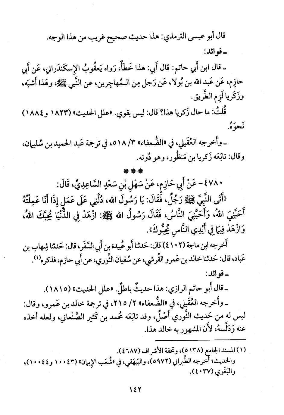 أخرجه ابن ماجة (٤١٠٢) قال: حدثنا أَبو عبيدة بن أبي السفر، قال: حدثنا شهاب بن عباد، قال: حدثنا خالد بن عَمرو القرشي، عن سفيان الثوري، عن أبي حازم، فذكره (¬١).