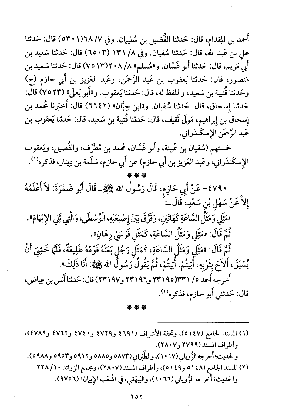 خمستهم (سفيان بن عُيينة، وأَبو غسان، محمد بن مطرف، والفضيل، ويعقوب الإسكندراني، وعبد العزيز بن أبي حازم) عن أبي حازم سلمة بن دينار، فذكره (¬١).