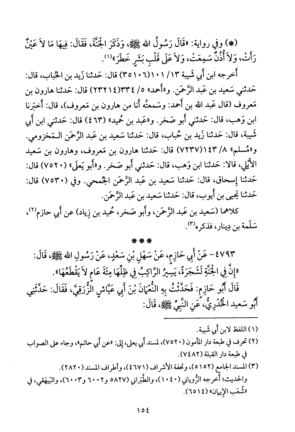و «عَبد بن حُميد» (٤٦٣) قال: حدثني ابن أبي شيبة، قال: حدثنا زيد بن حباب، قال: حدثنا سعيد بن عبد الرَّحمَن المخزومي. و «مسلم» ٨/ ١٤٣ (٧٢٣٧) قال: حدثنا هارون بن معروف، وهارون بن سعيد الأيلي، قالا: حدثنا ابن وهب، قال: حدثني أَبو صخر. و «أَبو يَعلى» (٧٥٢٠) قال: حدثنا إسحاق، قال: حدثنا سعيد بن عبد الرَّحمَن الجُمحي. وفي (٧٥٣٠) قال: حدثنا يحيى بن أيوب، قال: حدثنا سعيد بن عبد الرَّحمَن.