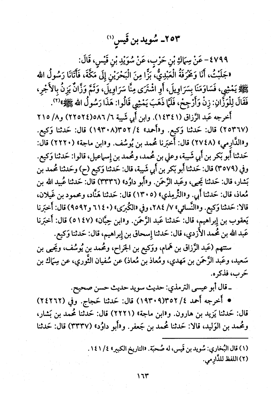 - قال التِّرمِذي: حديث سويد حديثٌ حسنٌ صحيحٌ.