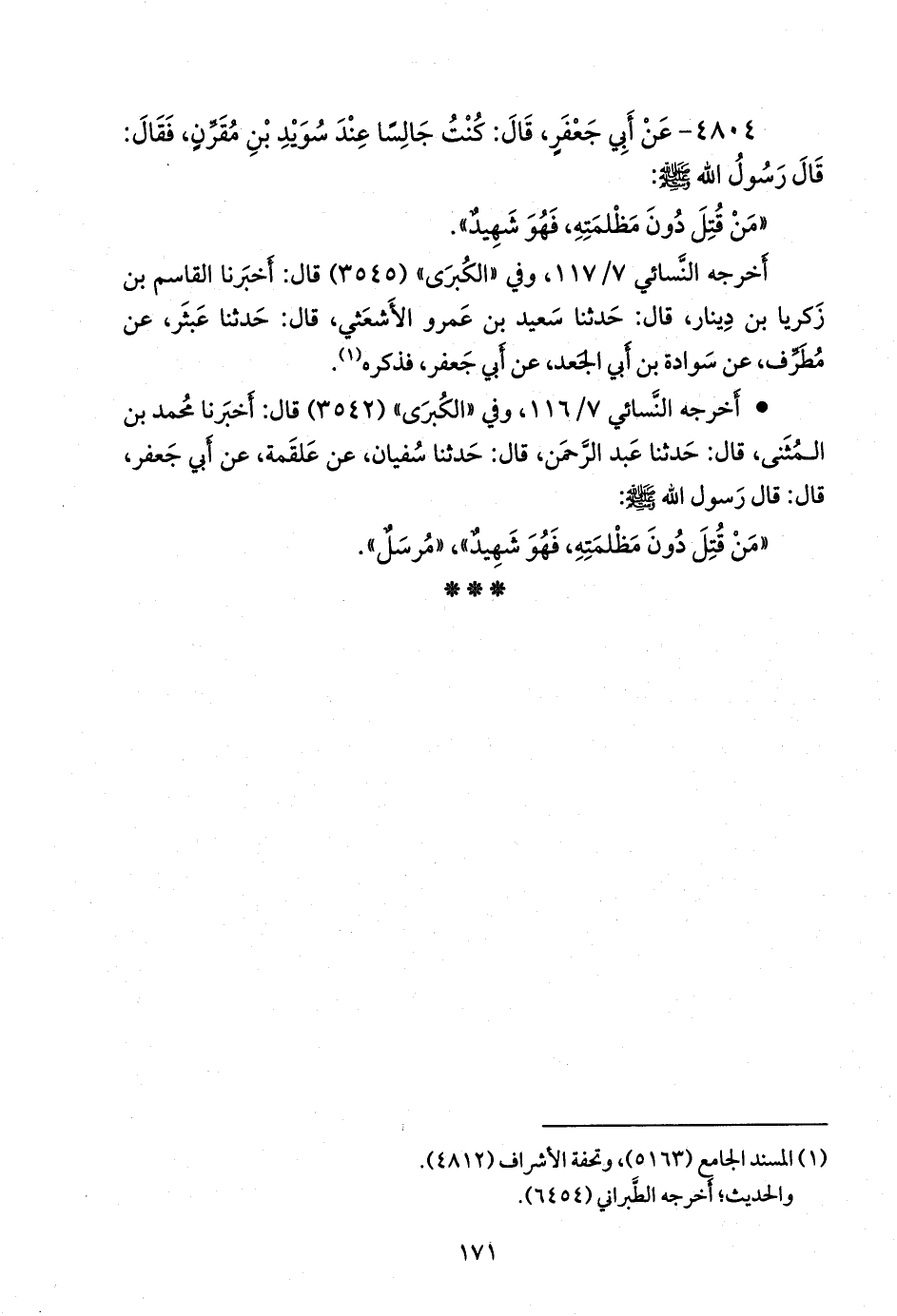 أخرجه النَّسَائي ٧/ ١١٧، وفي «الكبرى» (٣٥٤٥) قال: أخبرنا القاسم بن زكريا بن دينار، قال: حدثنا سعيد بن عَمرو الأشعثي، قال: حدثنا عبثر، عن مطرف، عن سوادة بن أبي الجعد، عن أبي جعفر، فذكره (¬١).