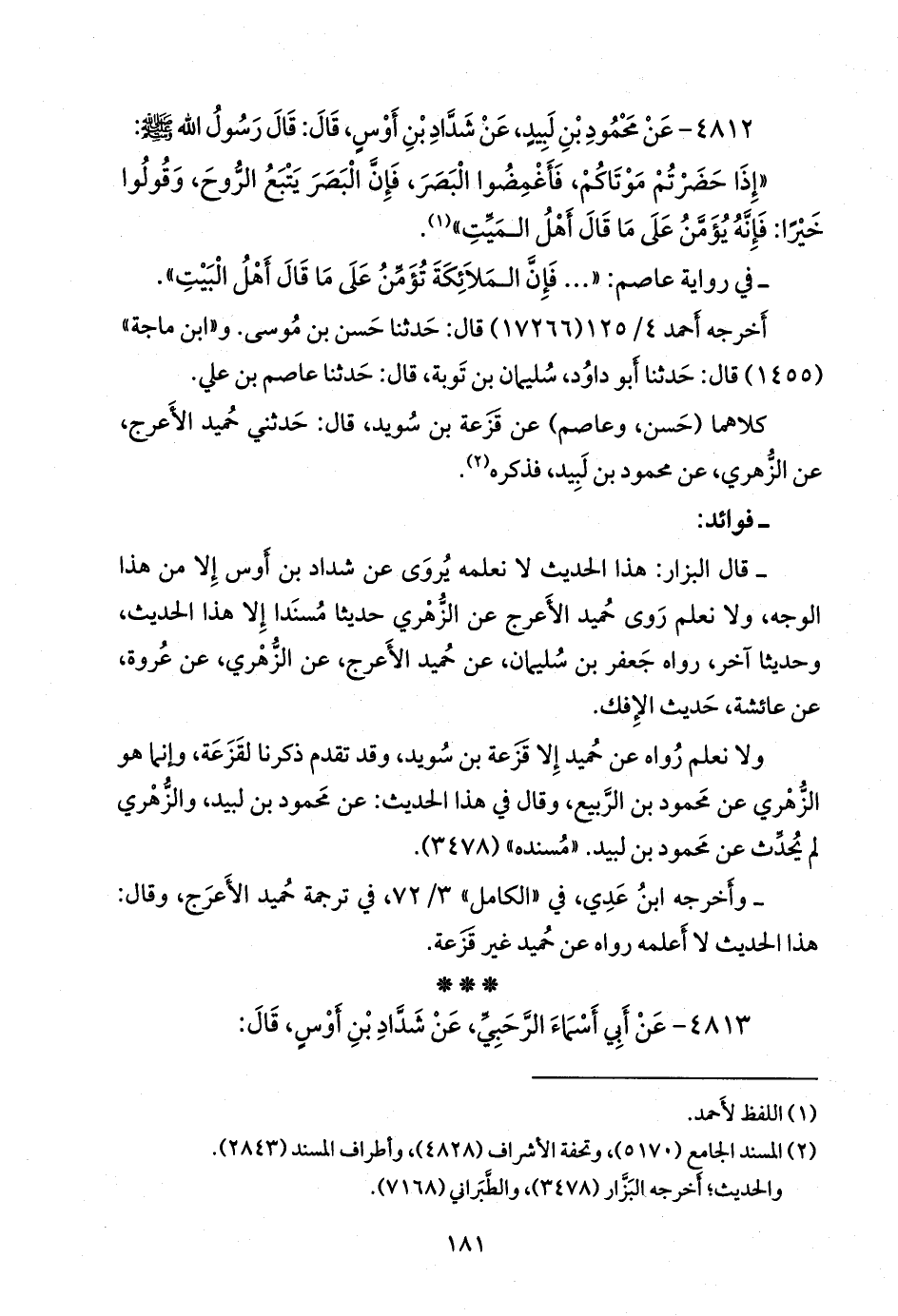 (¬٢) المسند الجامع (٥١٧٠)، وتحفة الأشراف (٤٨٢٨)، وأطراف المسند (٢٨٤٣).