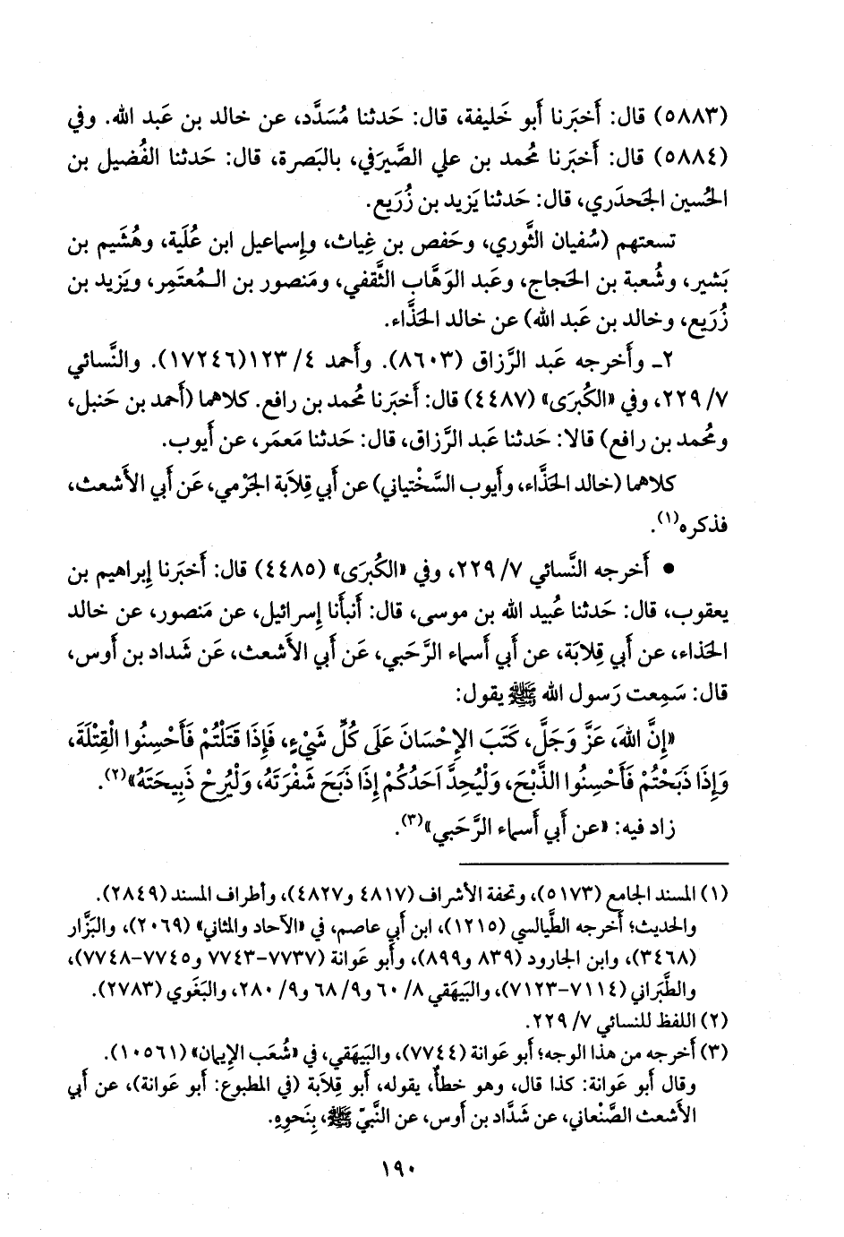 «إن الله، عز وجل، كتب الإحسان على كل شيء، فإذا قتلتم فأحسنوا القتلة، وإذا ذبحتم فأحسنوا الذبح، وليحد أحدكم إذا ذبح شفرته، وليرح ذبيحته» (¬٢).