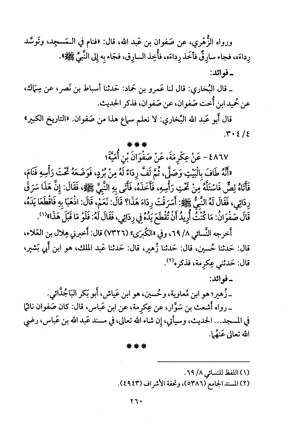 - قال البخاري: قال لنا عَمرو بن حماد: حدثنا أسباط بن نصر، عن سِمَاك، عن حميد ابن أخت صفوان، عن صفوان، فذكر الحديث.