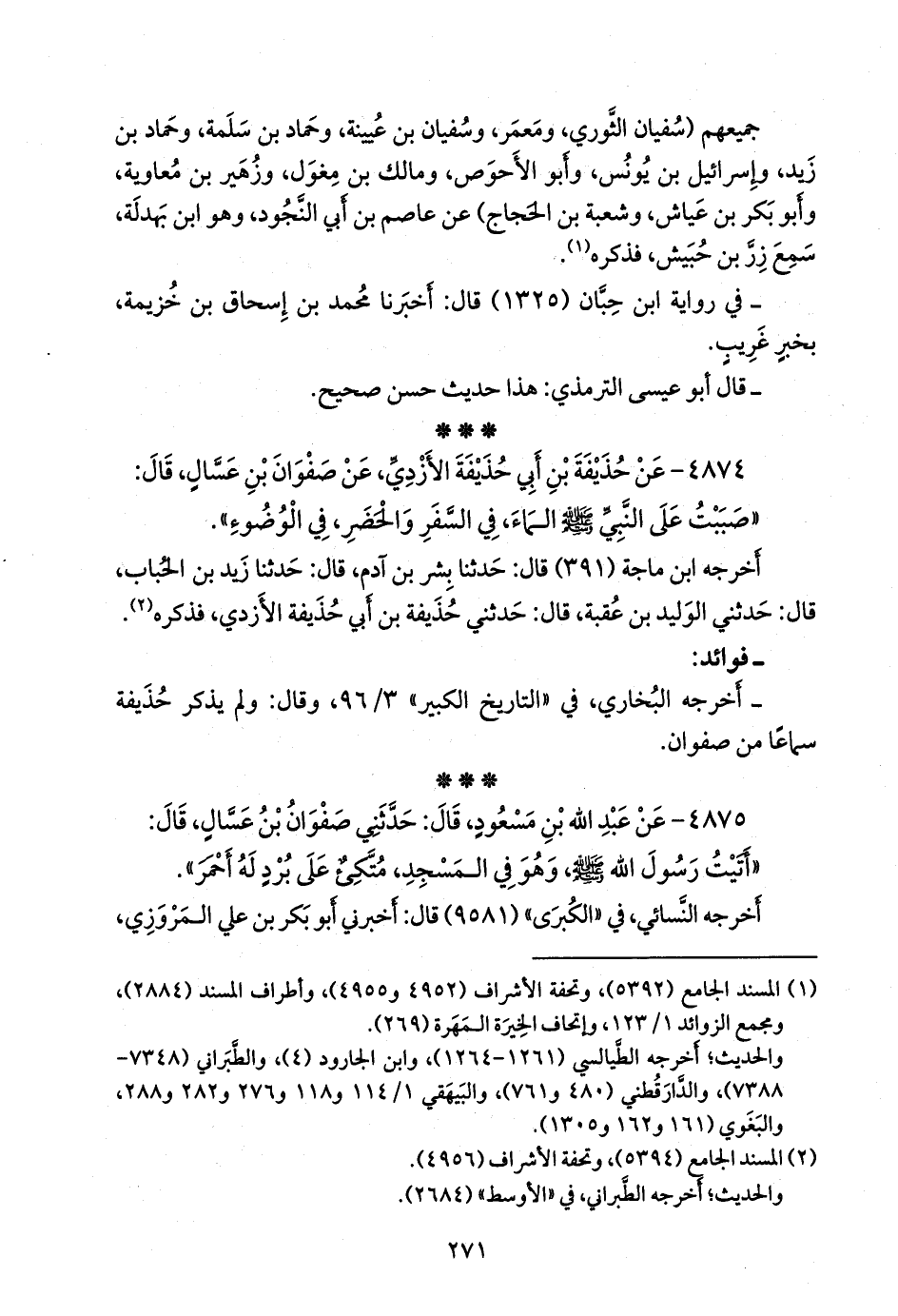 ٤٨٧٥ - عن عبد الله بن مسعود، قال: حدثني صفوان بن عسال، قال: