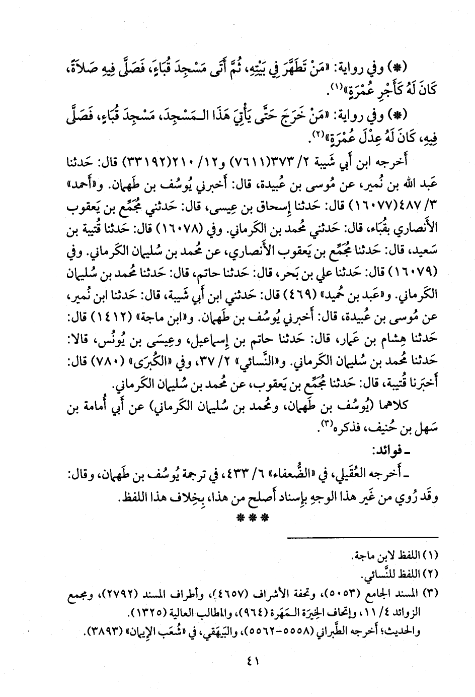(¬١) المسند الجامع (٥٠٥٣)، وتحفة الأشراف (٤٦٥٧)، وأطراف المسند (٢٧٩٢)، ومَجمَع الزوائد ٤/ ١١، وإتحاف الخِيرَة المَهَرة (٩٦٤)، والمطالب العالية (١٣٢٥).