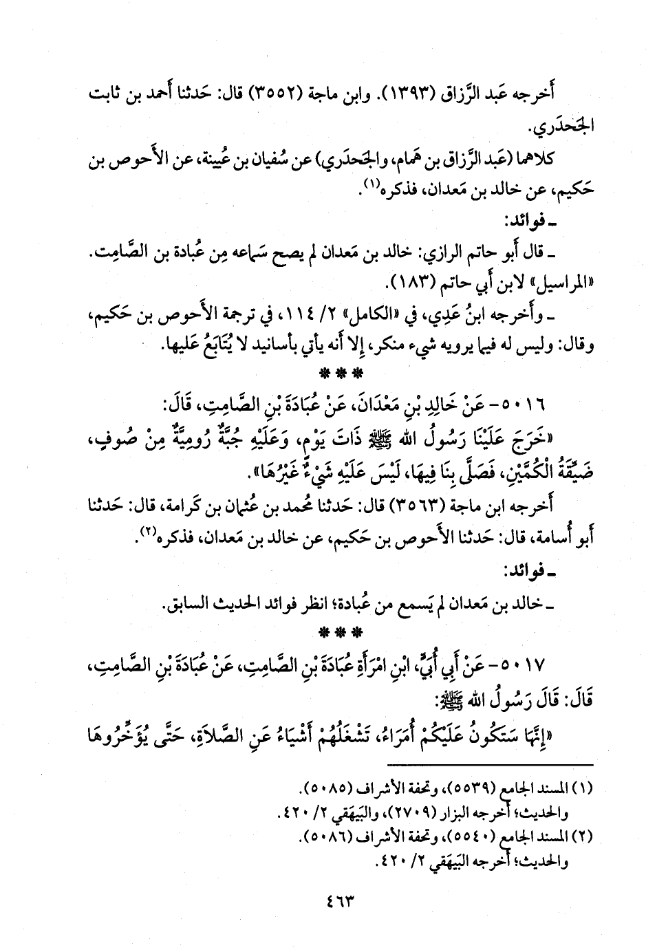 أخرجه ابن ماجة (٣٥٦٣) قال: حدثنا محمد بن عثمان بن كرامة، قال: حدثنا أَبو أُسامة، قال: حدثنا الأحوص بن حكيم، عن خالد بن مَعدان، فذكره (¬١).