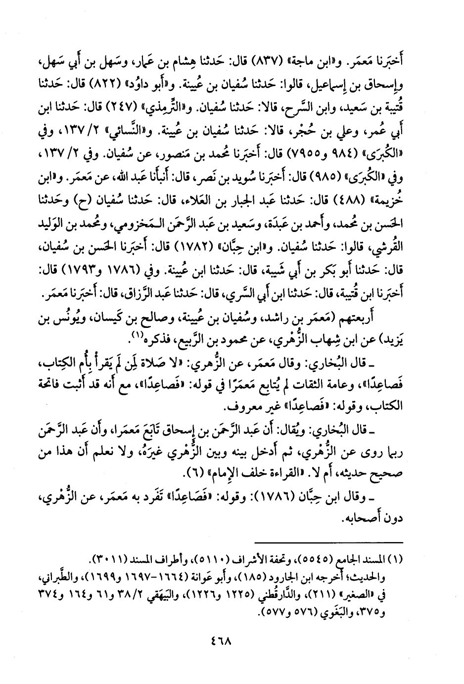 و «ابن حِبَّان» (١٧٨٢) قال: أخبرنا الحسن بن سفيان، قال: حدثنا أَبو بكر بن أبي شيبة، قال: حدثنا ابن عُيينة. وفي (١٧٨٦ و ١٧٩٣) قال: أخبرنا ابن قتيبة، قال: حدثنا ابن أبي السري، قال: حدثنا عبد الرزاق، قال: أخبرنا مَعمَر.