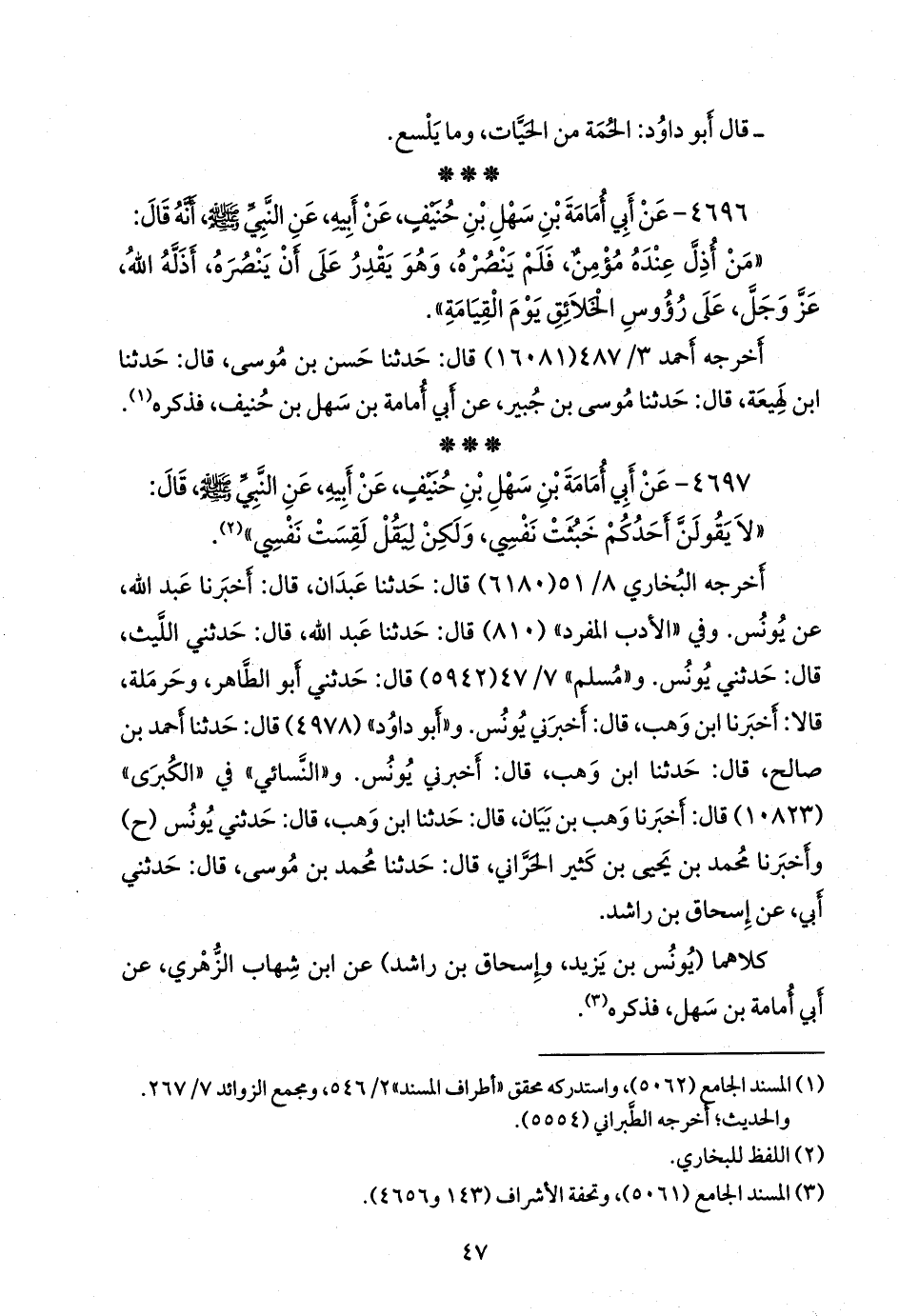 ٤٦٩٦ - عن أَبي أُمامة بن سهل بن حنيف، عن أبيه، عن النبي صَلى الله عَليه وسَلم أنه قال: