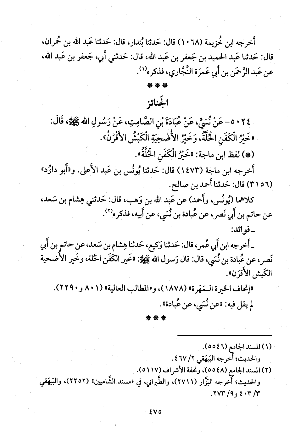 - لفظ ابن ماجة: «خير الكفن الحلة».