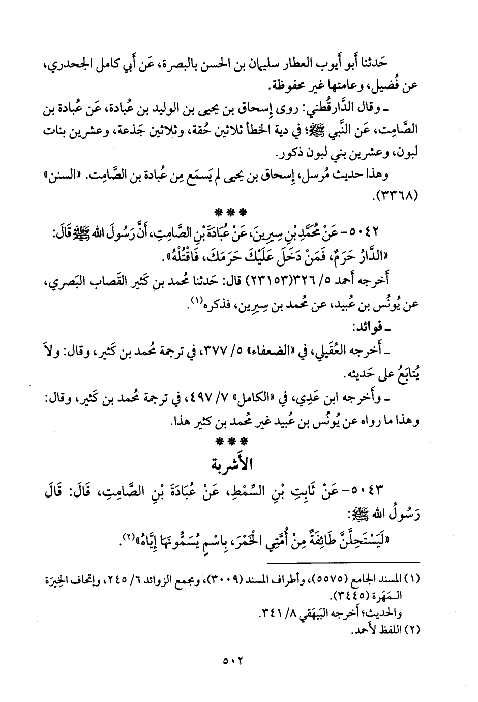 ٥٠٤٢ - عن محمد بن سِيرين، عن عبادة بن الصامت، أن رسول الله صَلى الله عَليه وسَلم قال:
