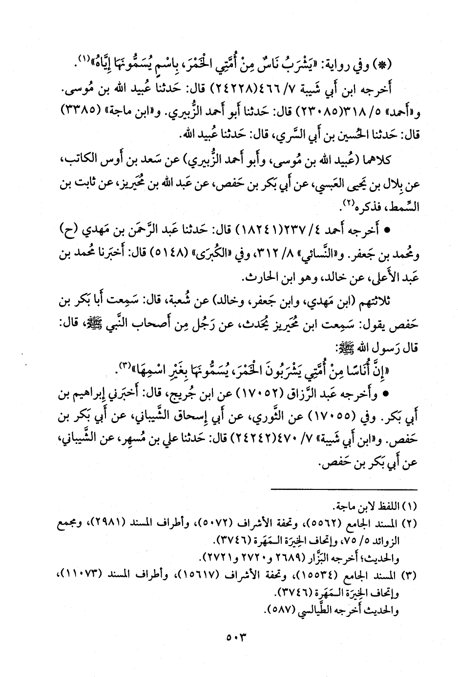 «ليشربن طائفة من أمتي الخمر، باسم يسمونها إياه» (¬٢).