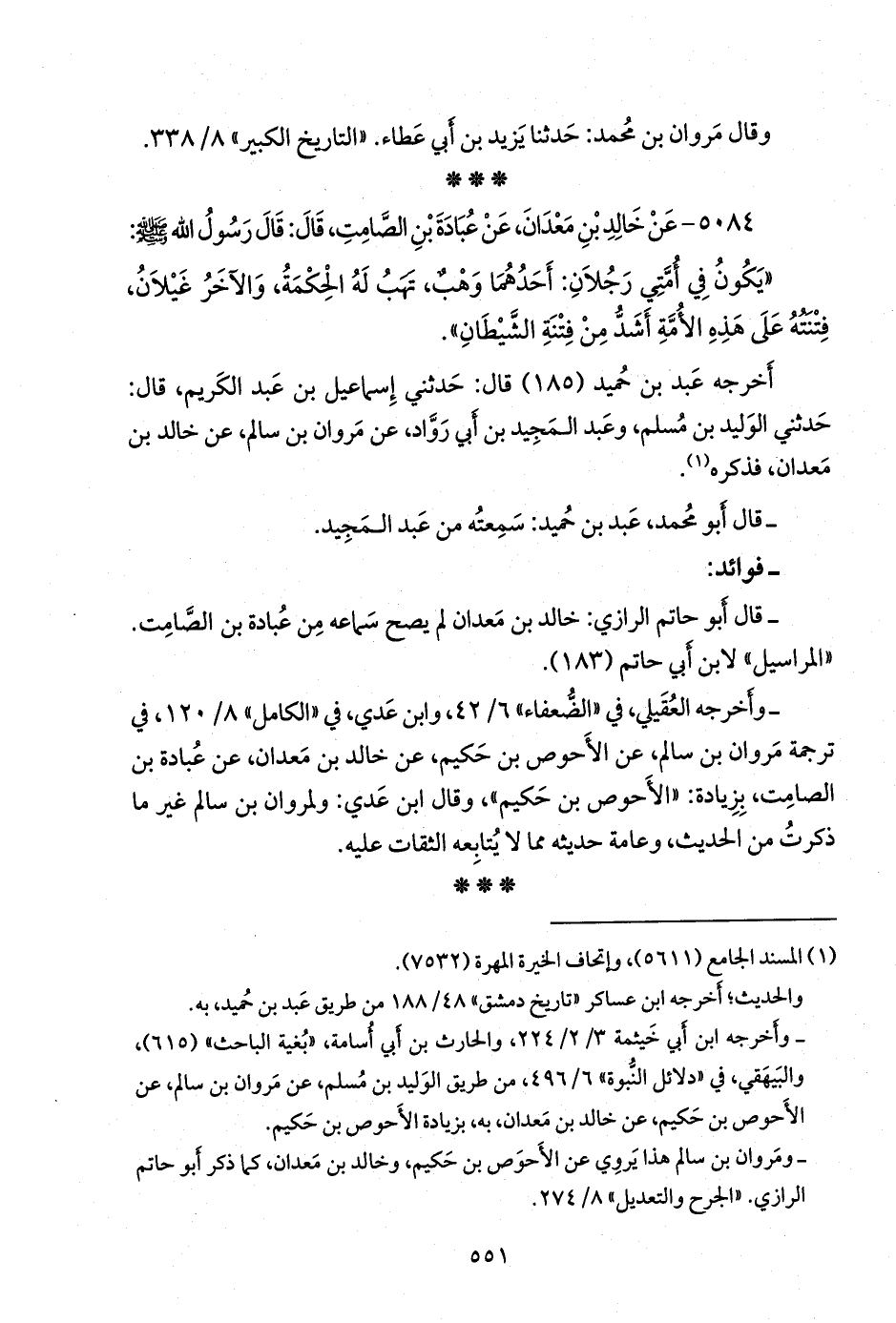 - ومروان بن سالم هذا يروي عن الأحوص بن حكيم، وخالد بن مَعدان، كما ذكر أَبو حاتم الرازي. «الجرح والتعديل» ٨/ ٢٧٤.