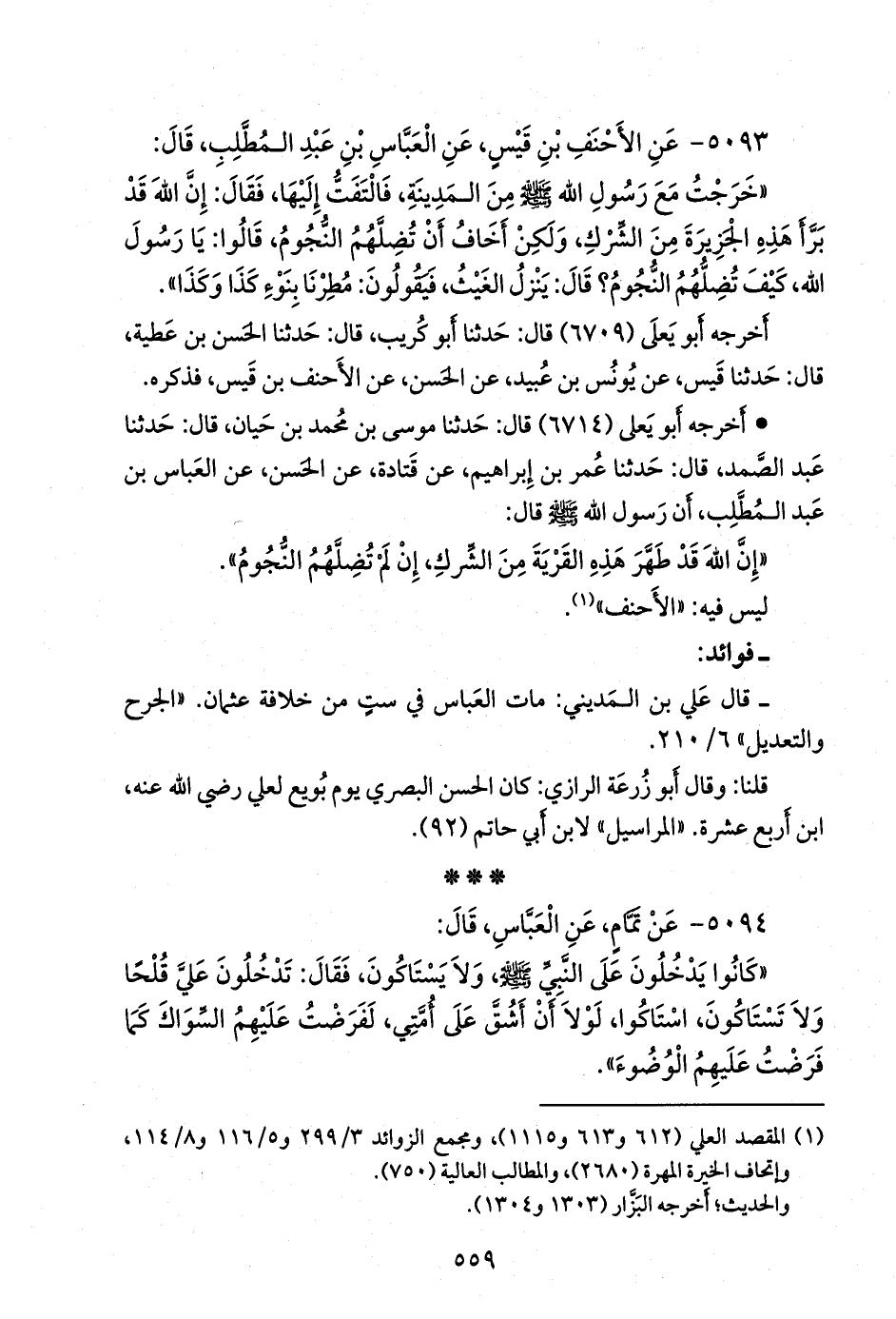 ٥٠٩٣ - عن الأحنف بن قيس، عن العباس بن عبد المطلب، قال: