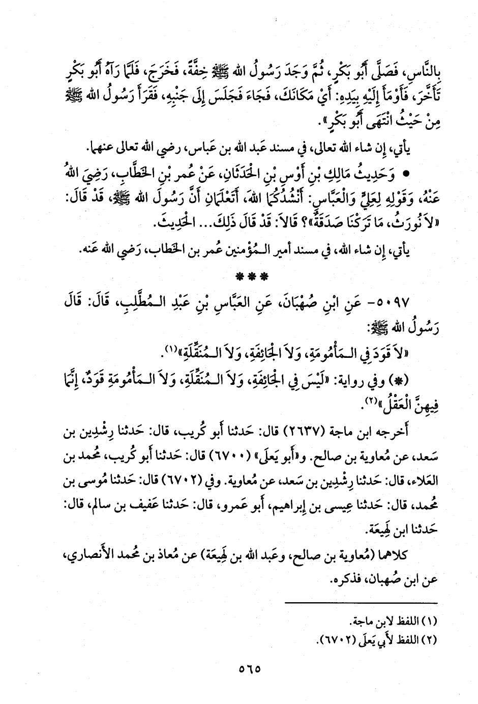 ٥٠٩٧ - عن ابن صهبان، عن العباس بن عبد المطلب، قال: قال رسول الله صَلى الله عَليه وسَلم: