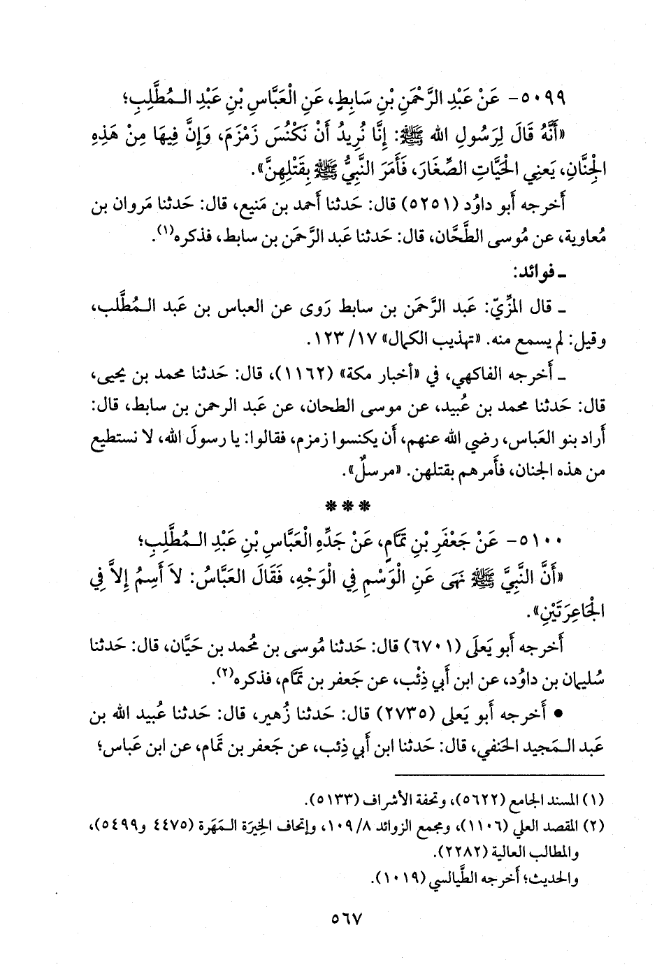 (¬١) المقصد العَلي (١١٠٦)، ومَجمَع الزوائد ٨/ ١٠٩، وإتحاف الخِيرَة المَهَرة (٤٤٧٥ و ٥٤٩٩)، والمطالب العالية (٢٢٨٢).