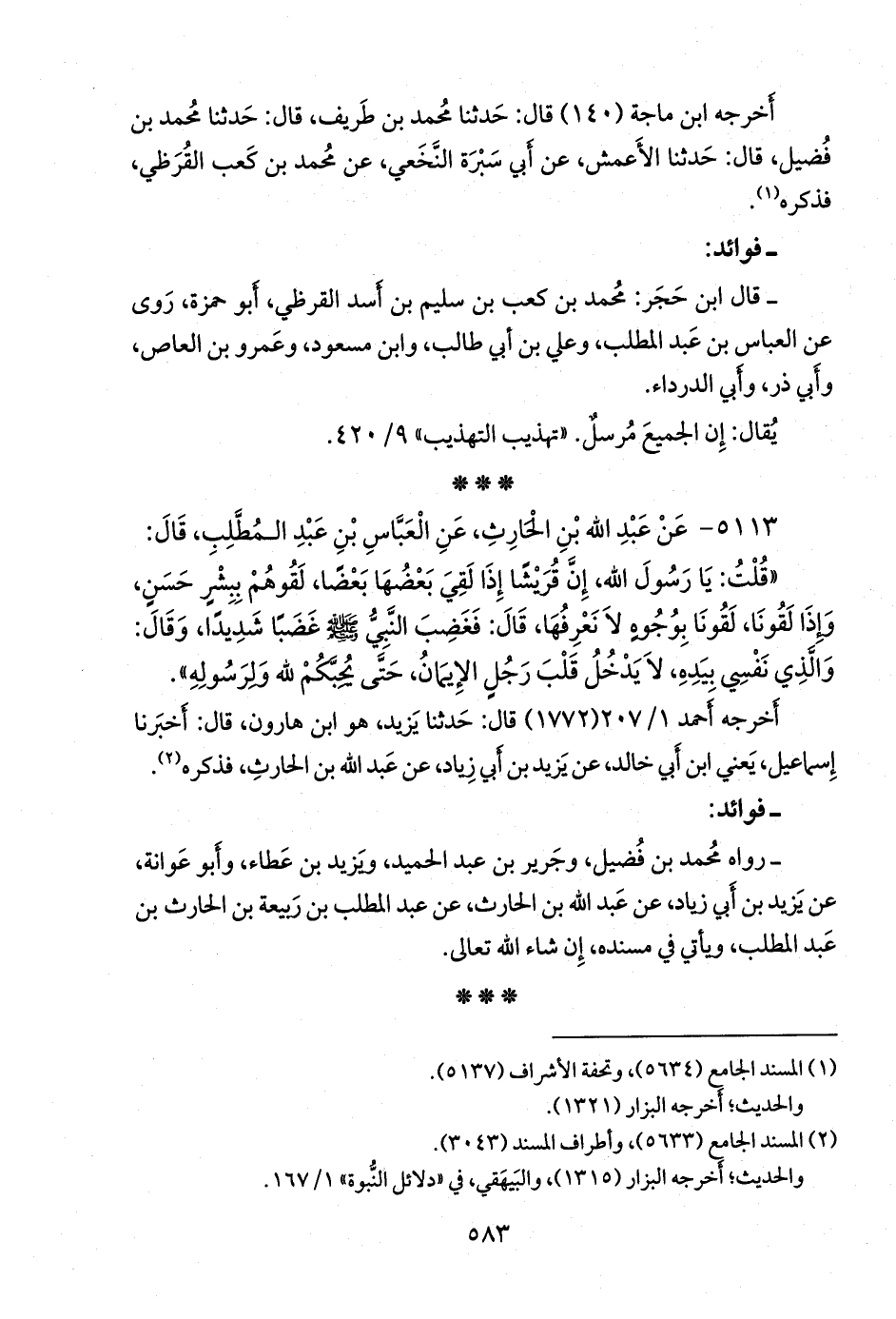 ٥١١٣ - عن عبد الله بن الحارث بن نوفل الهاشمي، عن العباس بن عبد المطلب، قال: