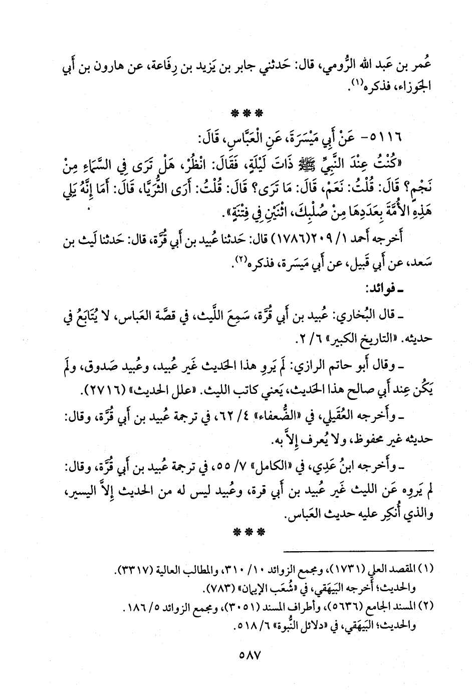 (¬١) المسند الجامع (٥٦٣٦)، وأطراف المسند (٣٠٥١)، ومَجمَع الزوائد ٥/ ١٨٦.