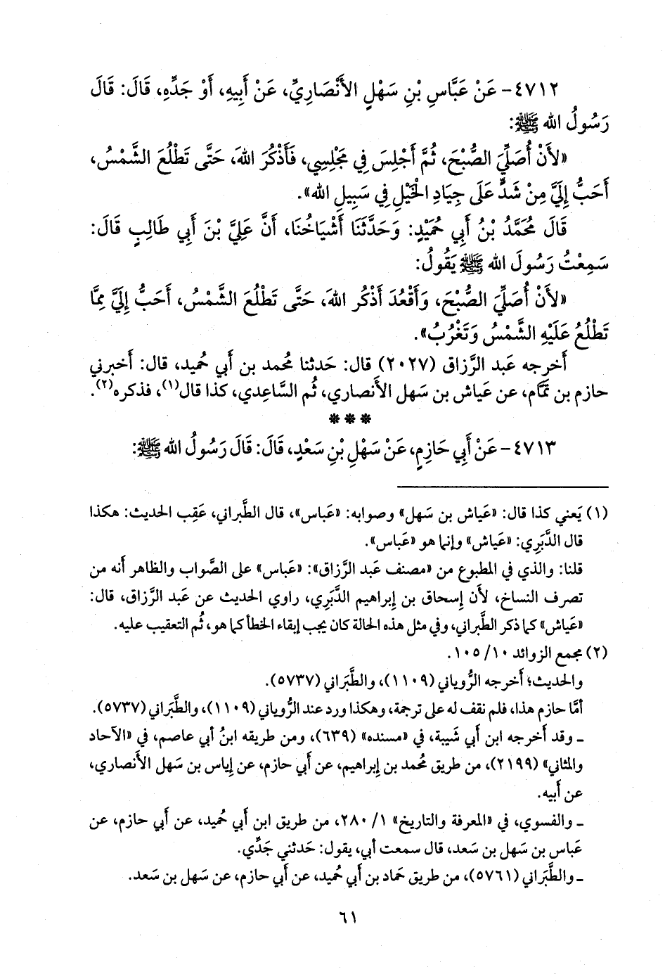٤٧١٢ - عن عباس بن سهل الأَنصاري، عن أبيه، أو جده، قال: قال رسول الله صَلى الله عَليه وسَلم: